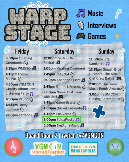 Being shown live on the Warp Stage at VGMCon at 5PM Central, both in-person for VGMCon attendees and livestreamed at https://www.twitch.tv/VGMCon