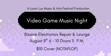 Night of video game music at the Bizarre Electronics Repair and Lounge, also featuring our friends AudioMocha and Airship Overdrive!